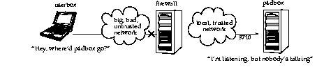 The only glitch is that there's a login session you don't normally want on the firewall machine. This can be solved by running
