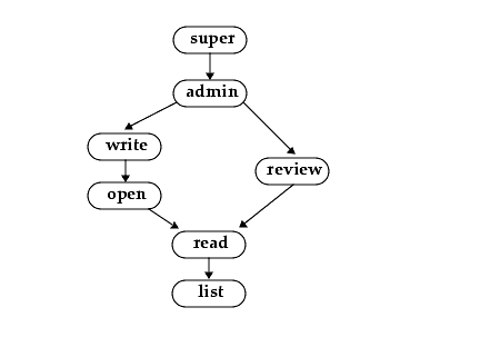 One of the access levels list, read, open, write, review, or super, as defined above. |