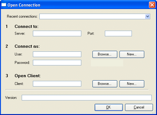 - Specify connection settings for the server that contains the project you want to check out and click OK. The Open Project dialog is displayed.