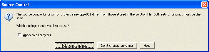 - Click Solution's bindings. Visual Studio displays the following dialog.