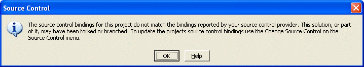If you branch a project using Perforce, the Visual Studio bindings must be corrected to correspond to the project's new location. To correct bindings for a branched solution, you must perform the following steps the first time you check out the branched project.
