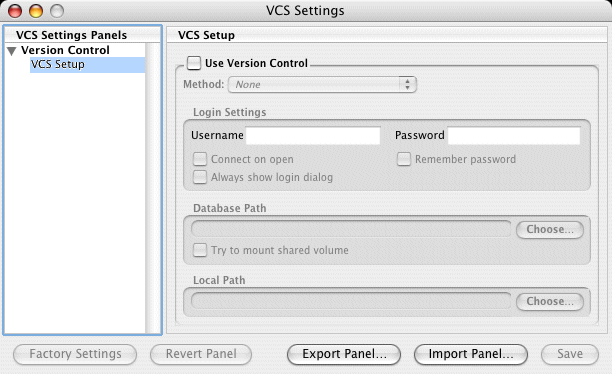 CodeWarrior displays the VCS Settings dialog as shown in the following figure.