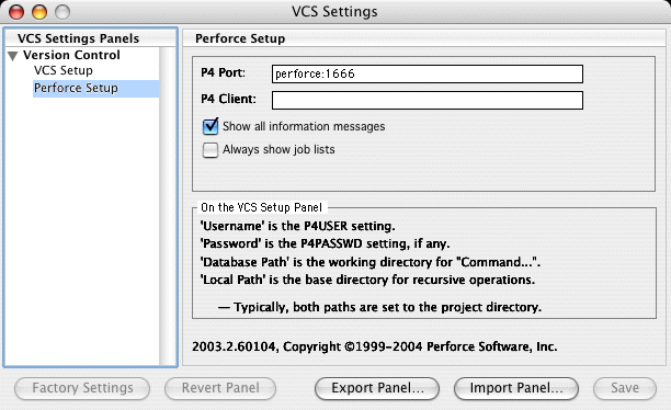 - Click Perforce Setup in the left pane of the VCS Settings dialog.
