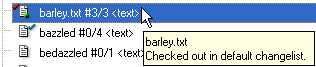 P4V provides tooltips for many objects on the screen. For example, to display the status of a file, hold the mouse cursor over the file in the left pane. P4V displays a tooltip like the following one.