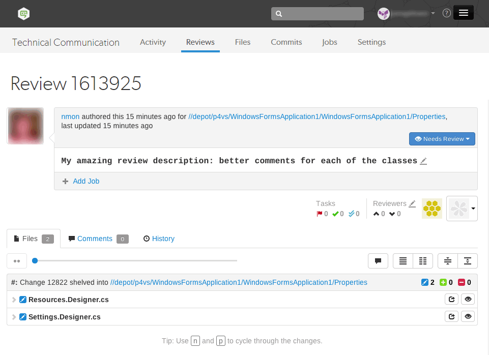Each review requires a description. The default description is the changelist's description.