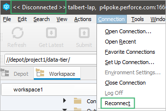 - Open the connection specified by your Perforce environment settings.