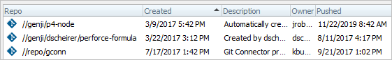 which allows you to view each repo for which you have read permission. See Permissions in Helix Core P4 Command Reference.