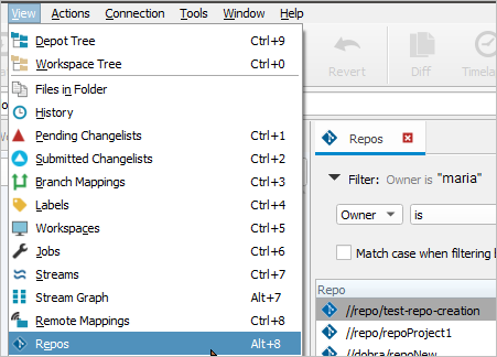 P4V version 2020.2 is the first version to provide the Repos tab: